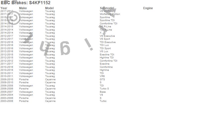 Below is an abbreviated list of applications for the S4 Kits Redstuff and USR Rotor.