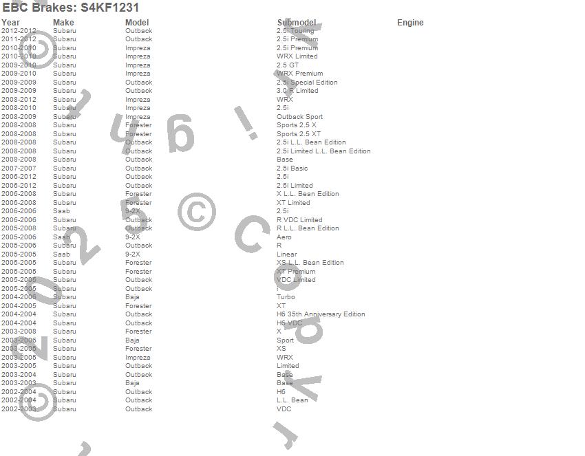 Below is an abbreviated list of applications for the S4 Kits Redstuff and USR Rotor.