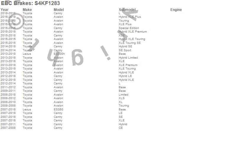 Below is an abbreviated list of applications for the S4 Kits Redstuff and USR Rotor.