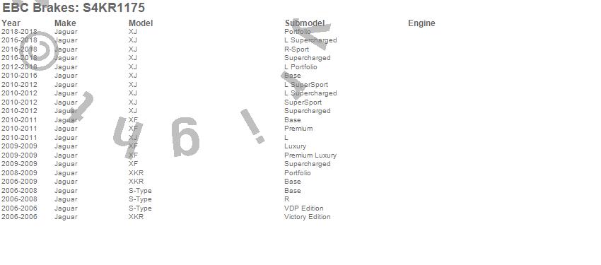 Below is an abbreviated list of applications for the S4 Kits Redstuff and USR Rotor.