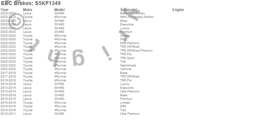 Below is an abbreviated list of applications for the S5 Kits Yellowstuff And GD Rotors.