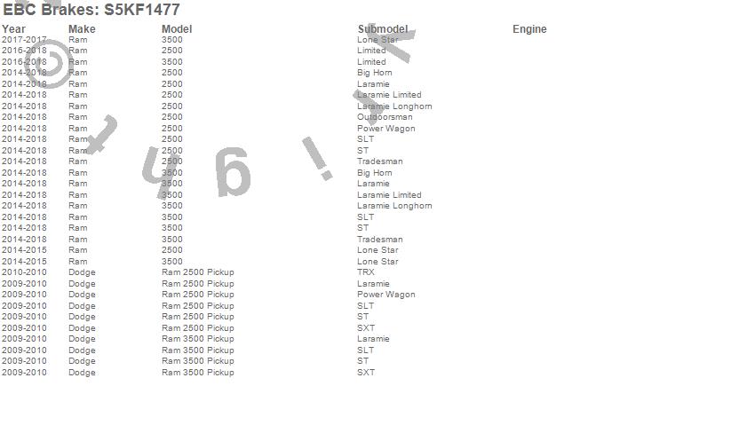 Below is an abbreviated list of applications for the S5 Kits Yellowstuff And GD Rotors.