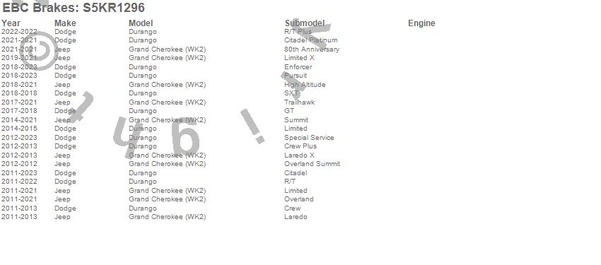 Below is an abbreviated list of applications for the S5 Kits Yellowstuff And GD Rotors.