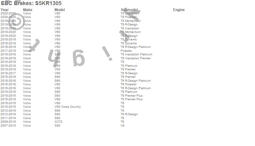 Below is an abbreviated list of applications for the S5 Kits Yellowstuff And GD Rotors.