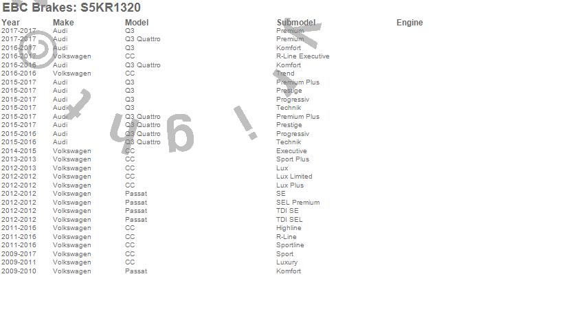 Below is an abbreviated list of applications for the S5 Kits Yellowstuff And GD Rotors.