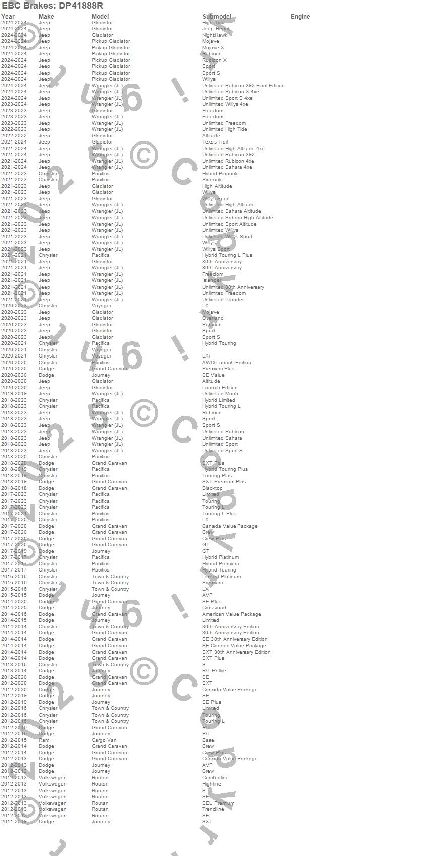 C/V, Gladiator, Grand Caravan, Journey, Pacifica, Pickup Gladiator, Routan, Town & Country, Voyager, Wrangler (JL), Chrysler, Dodge, Jeep, Ram, Volkswagen, 2024, 2023, 2022, 2021, 2020