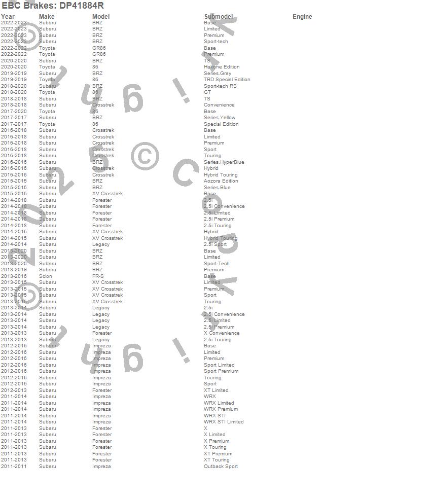 86, BRZ, Crosstrek, Forester, FR-S, GR86, Impreza, Legacy, XV Crosstrek, Scion, Subaru, Toyota, 2023, 2022, 2020, 2019, 2018, 2017, 2016, 2015