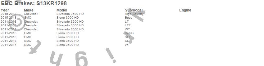 Below is an abbreviated list of applications for the S13 Kits Yellowstuff and RK Rotors.