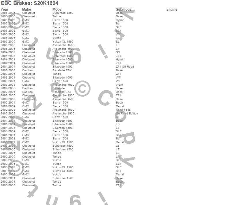 Below is an abbreviated list of applications for the S20 Kits Ultimax and Plain Rotors.