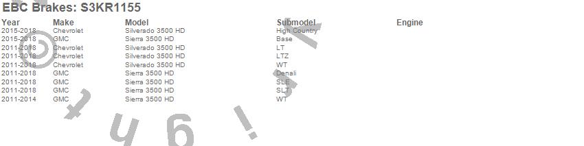Below is an abbreviated list of applications for the S3 Kits Greenstuff 6000 and GD Rotors Truck/SUV.