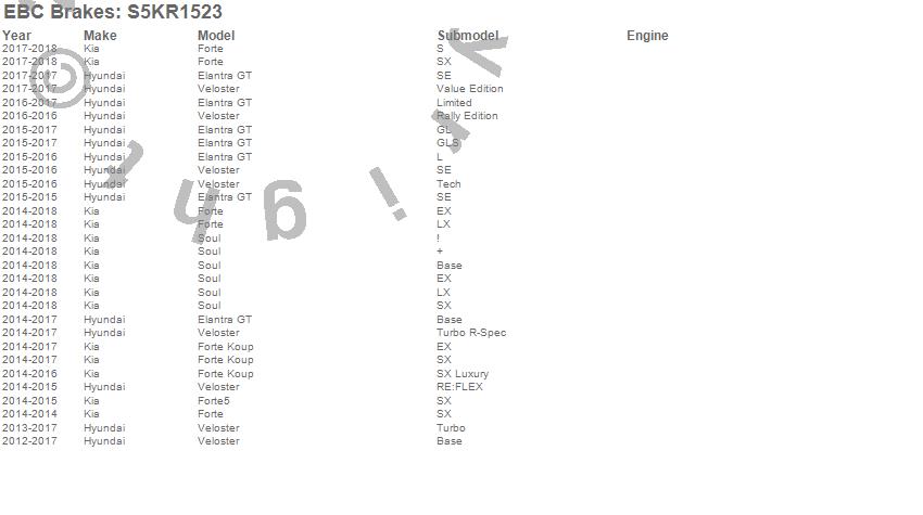 Below is an abbreviated list of applications for the S5 Kits Yellowstuff And GD Rotors.