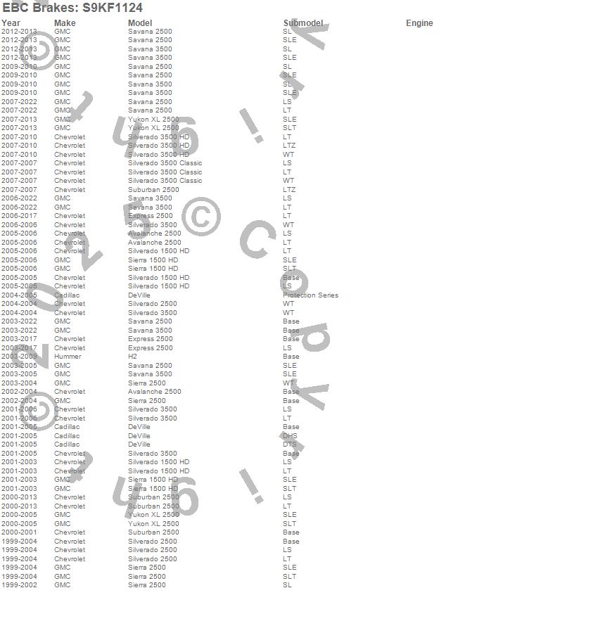 Below is an abbreviated list of applications for the S9 Kits Yellowstuff and USR Rotors.
