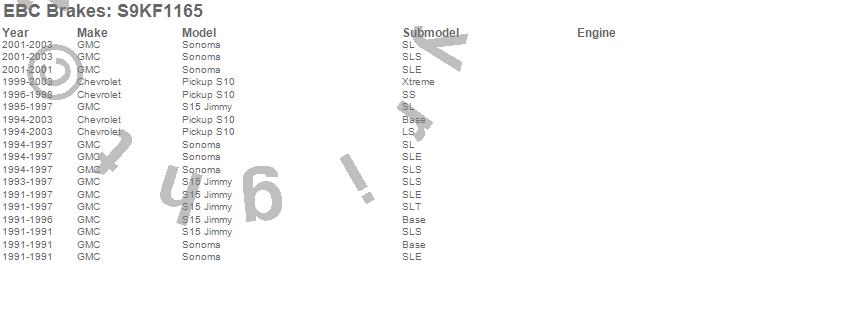 Below is an abbreviated list of applications for the S9 Kits Yellowstuff and USR Rotors.