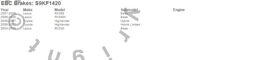 Below is an abbreviated list of applications for the S9 Kits Yellowstuff and USR Rotors.