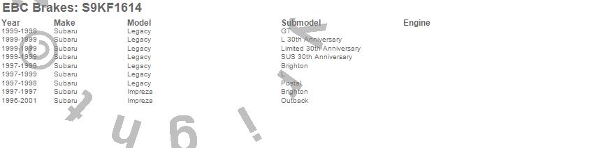 Below is an abbreviated list of applications for the S9 Kits Yellowstuff and USR Rotors.
