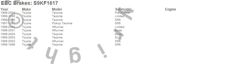 Below is an abbreviated list of applications for the S9 Kits Yellowstuff and USR Rotors.