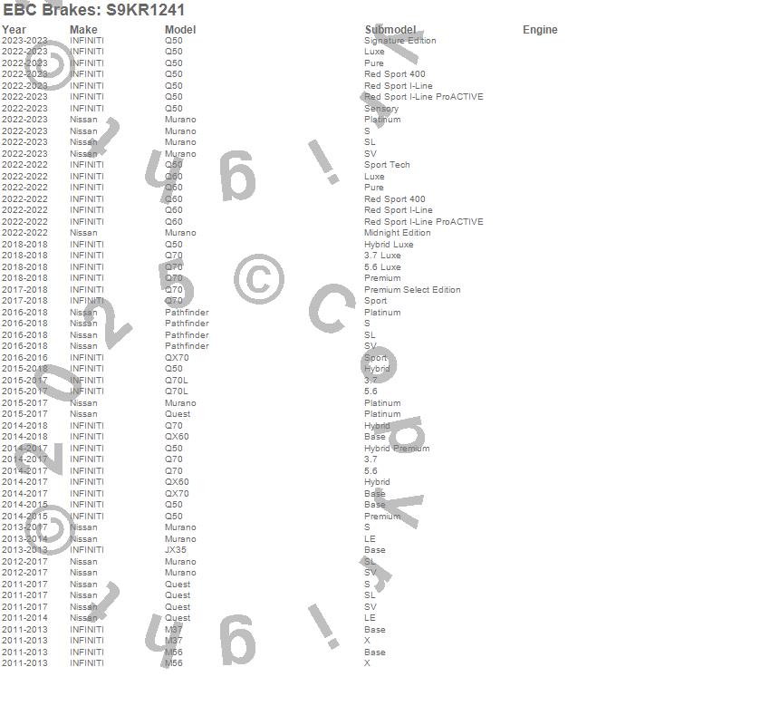 Below is an abbreviated list of applications for the S9 Kits Yellowstuff and USR Rotors.