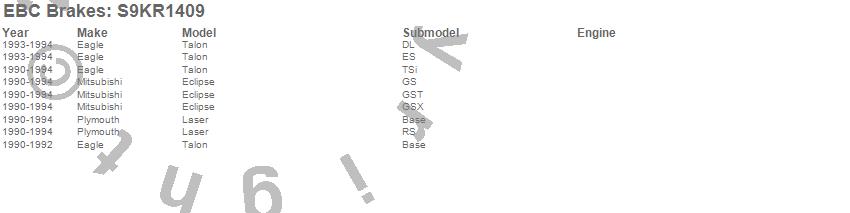 Below is an abbreviated list of applications for the S9 Kits Yellowstuff and USR Rotors.