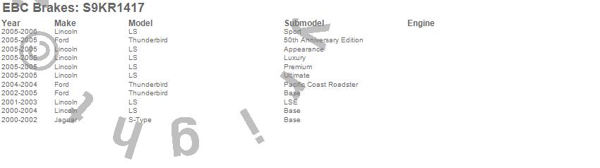 Below is an abbreviated list of applications for the S9 Kits Yellowstuff and USR Rotors.