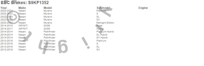 Below is an abbreviated list of applications for the S9 Kits Yellowstuff and USR Rotors.