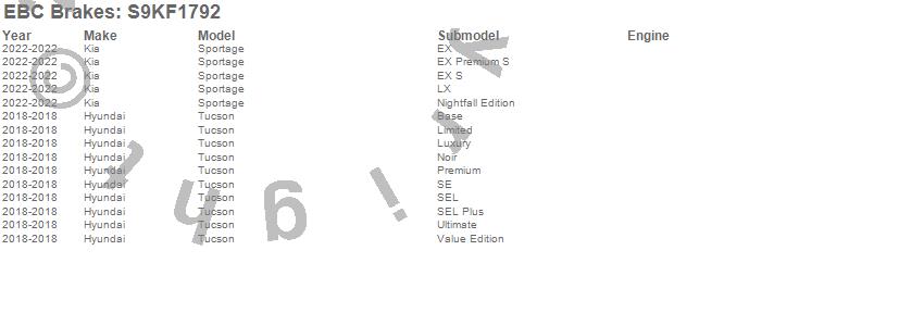 Below is an abbreviated list of applications for the S9 Kits Yellowstuff and USR Rotors.