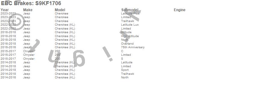Below is an abbreviated list of applications for the S9 Kits Yellowstuff and USR Rotors.