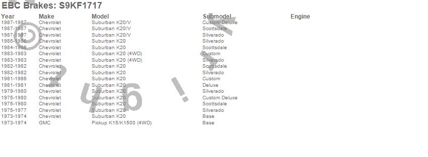 Below is an abbreviated list of applications for the S9 Kits Yellowstuff and USR Rotors.