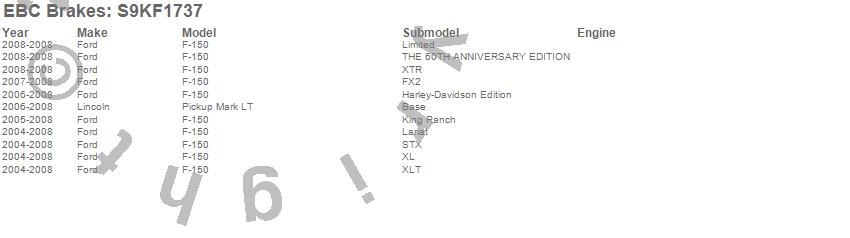 Below is an abbreviated list of applications for the S9 Kits Yellowstuff and USR Rotors.