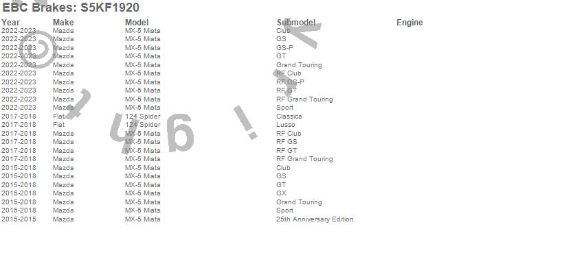 Below is an abbreviated list of applications for the S5 Kits Yellowstuff And GD Rotors.