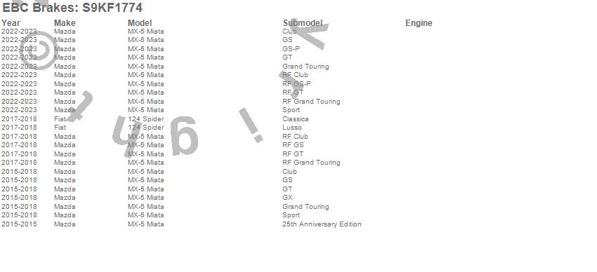 Below is an abbreviated list of applications for the S9 Kits Yellowstuff and USR Rotors.
