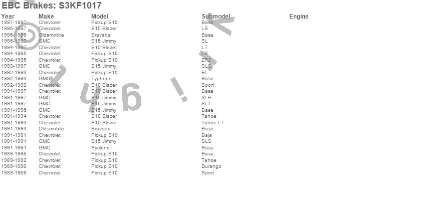 Below is an abbreviated list of applications for the S3 Kits Greenstuff 6000 and GD Rotors Truck/SUV.