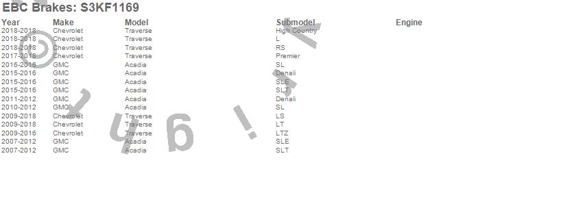 Below is an abbreviated list of applications for the S3 Kits Greenstuff 6000 and GD Rotors Truck/SUV.