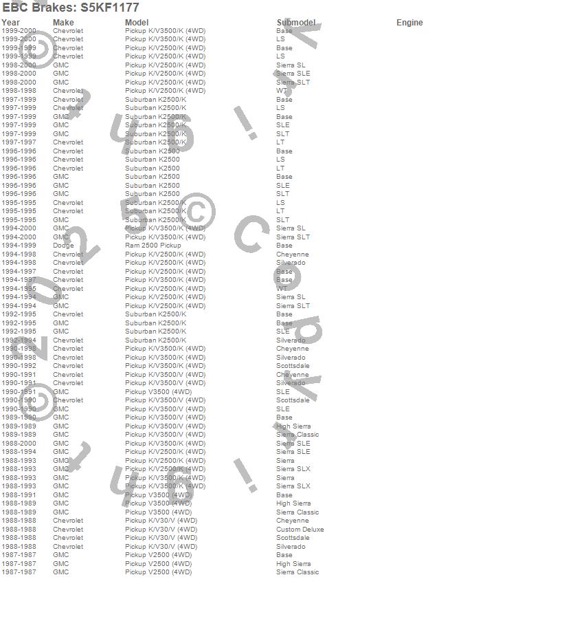 Below is an abbreviated list of applications for the S5 Kits Yellowstuff And GD Rotors.