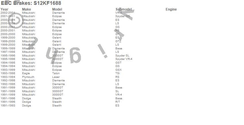 Below is an abbreviated list of applications for the S12 Kits Redstuff and RK Rotors.