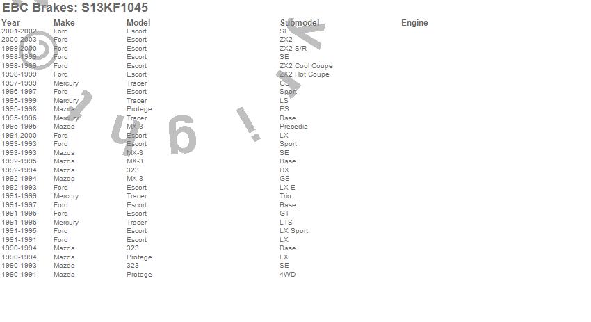 323, Escort, MX-3, Protege, Tracer, Ford, Mazda, Mercury, 2003, 2002, 2001, 2000, 1999, 1998, 1997, 1996, 1995, 1994, 1993, 1992