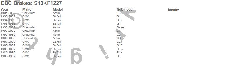 Below is an abbreviated list of applications for the S13 Kits Yellowstuff and RK Rotors.