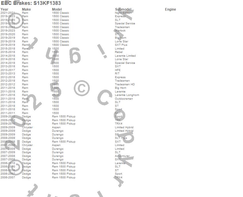 Below is an abbreviated list of applications for the S13 Kits Yellowstuff and RK Rotors.