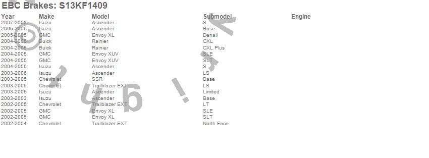 Below is an abbreviated list of applications for the S13 Kits Yellowstuff and RK Rotors.
