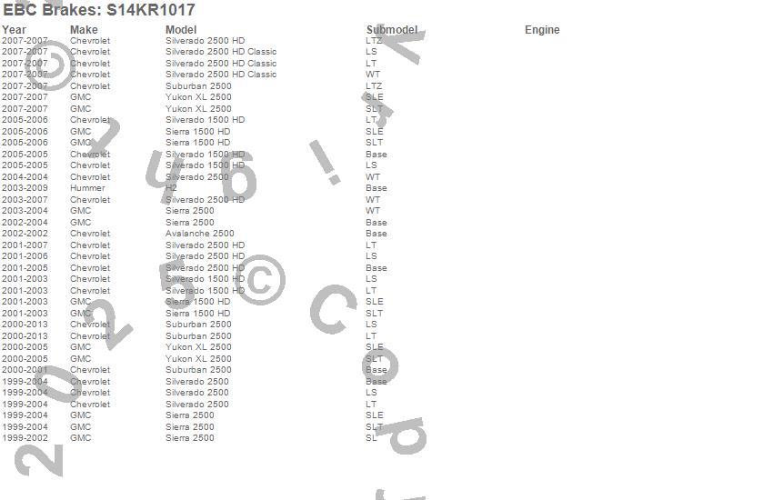 Below is an abbreviated list of applications for the S14 Kits Greenstuff and RK Rotors SUV.