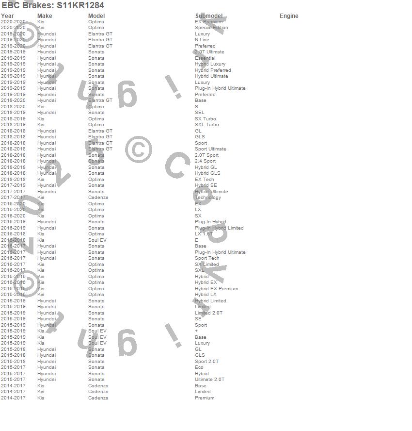 EBC Brakes - S11 Kits Greenstuff 2000 and RK Rotors P/N S11KR1284 Features: