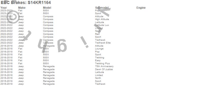 Below is an abbreviated list of applications for the S14 Kits Greenstuff and RK Rotors SUV.