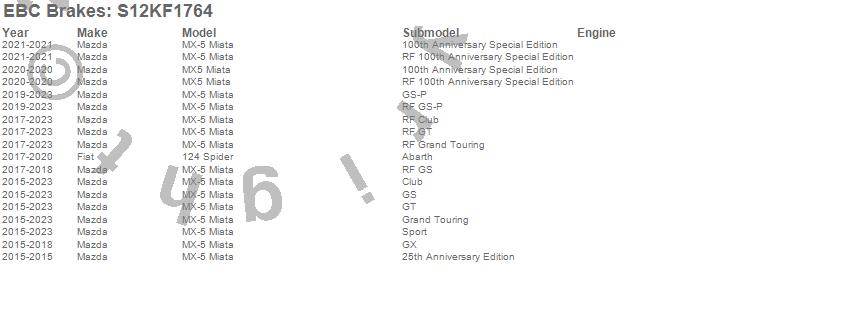 Below is an abbreviated list of applications for the S12 Kits Redstuff and RK Rotors.