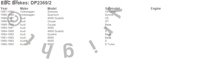 Below is an abbreviated list of applications for the Greenstuff 2000 Series Sport Brake Pads.