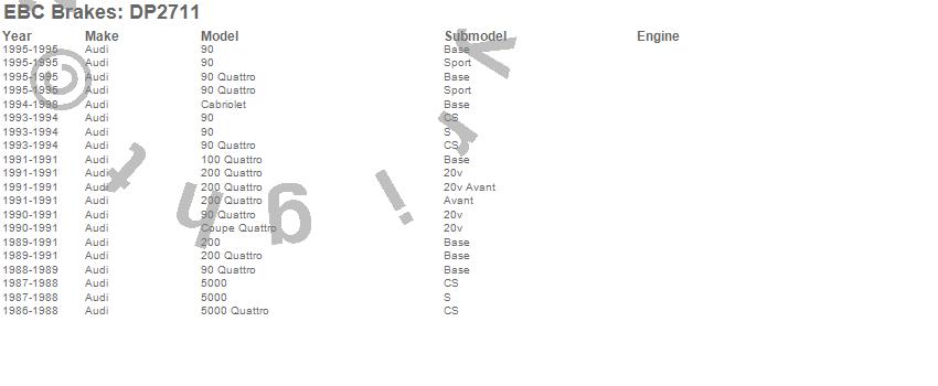 Below is an abbreviated list of applications for the Greenstuff 2000 Series Sport Brake Pads.