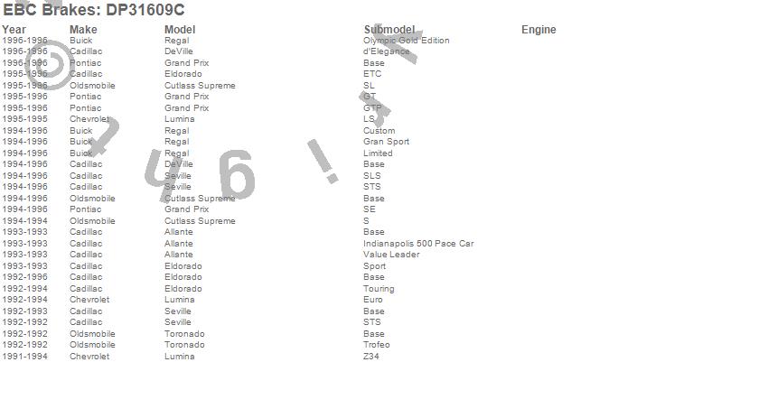 Allante, Cutlass Supreme, DeVille, Eldorado, Grand Prix, Lumina, Regal, Seville, Toronado, Buick, Cadillac, Chevrolet, Oldsmobile, Pontiac, 1996, 1995, 1994, 1993, 1992, 1991