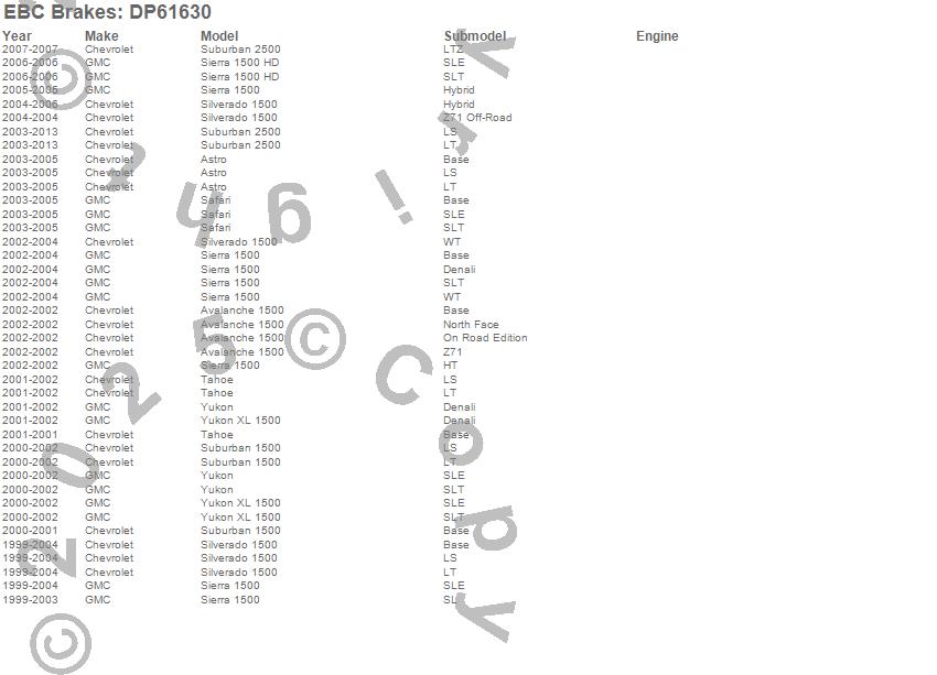 Below is an abbreviated list of applications for the 6000 Series Greenstuff Truck/SUV Brakes Disc Pads.