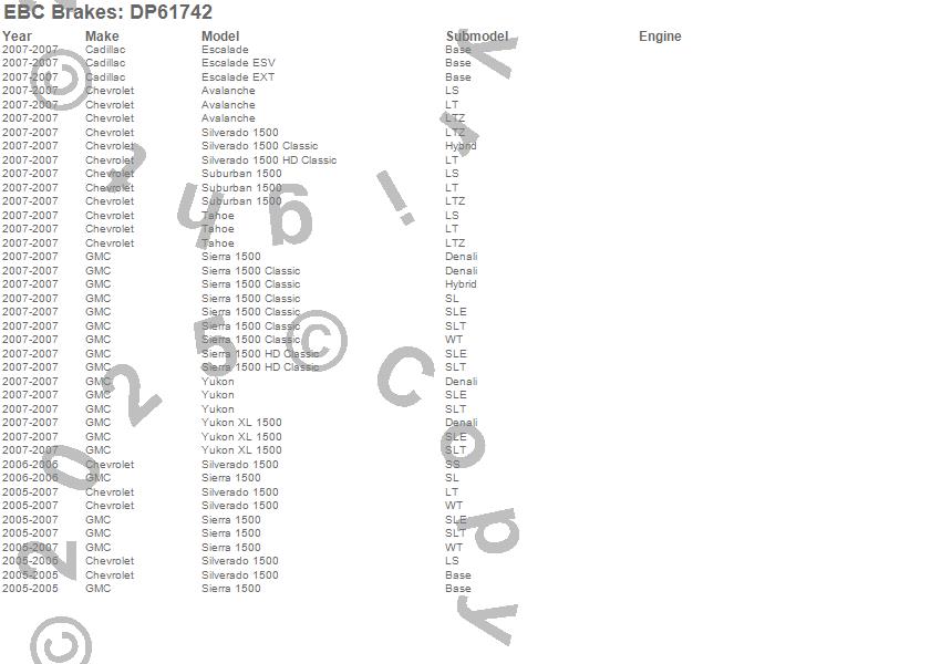 Below is an abbreviated list of applications for the 6000 Series Greenstuff Truck/SUV Brakes Disc Pads.