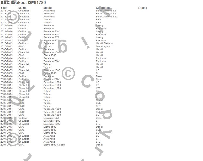 Below is an abbreviated list of applications for the 6000 Series Greenstuff Truck/SUV Brakes Disc Pads.