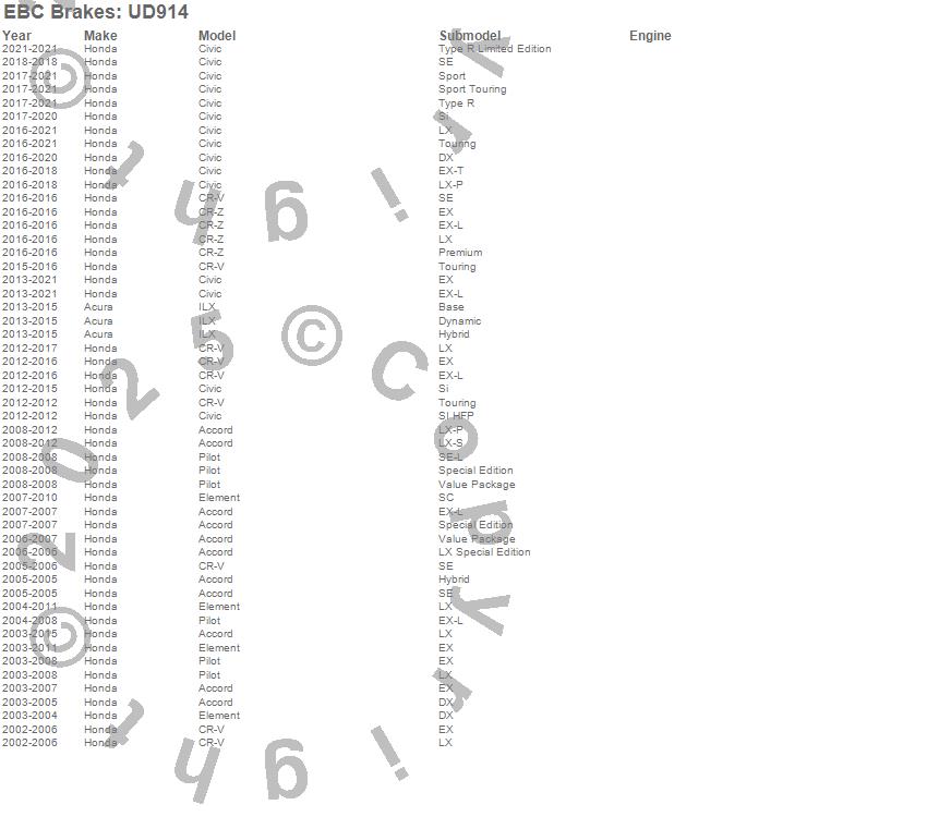 EBC Brakes UD914 Ultimax OEM Replacement Brake Pads FMSI Pad No. D914 - Vented - 262mm Dia. - 47.3mm Height - 21mm Thick - 64.1mm Center Hole Dia. - Pad Dimensions: 142 x 57 x 18mm
