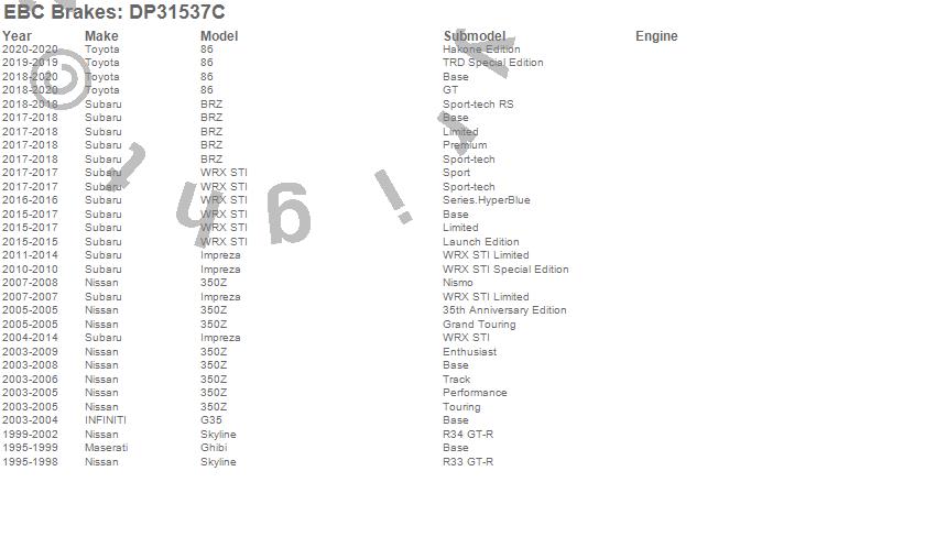Below is an abbreviated list of applications for the Redstuff Ceramic Low Dust Brake Pads.